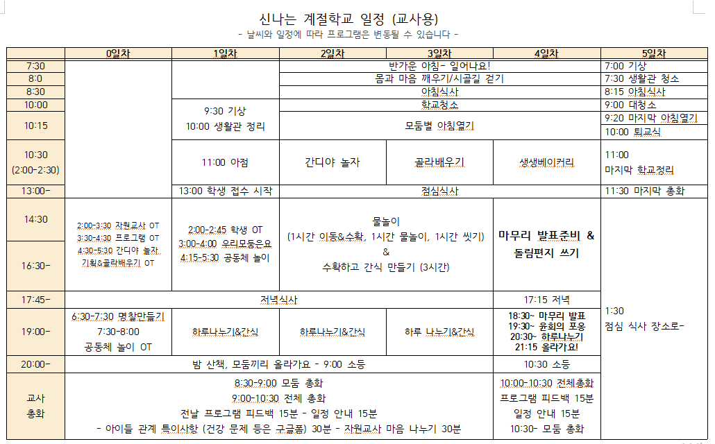(학교에서는 약 2시에 자원교사 전체 일정이 마무리됩니다. 마무리 이후에는 한정식집에서 가벼운 뒷풀이가 진행됩니다. 개인 사정으로 뒷풀이 참여가 어려운 분은 입교 때 말씀해주시면 감사하겠습니다)